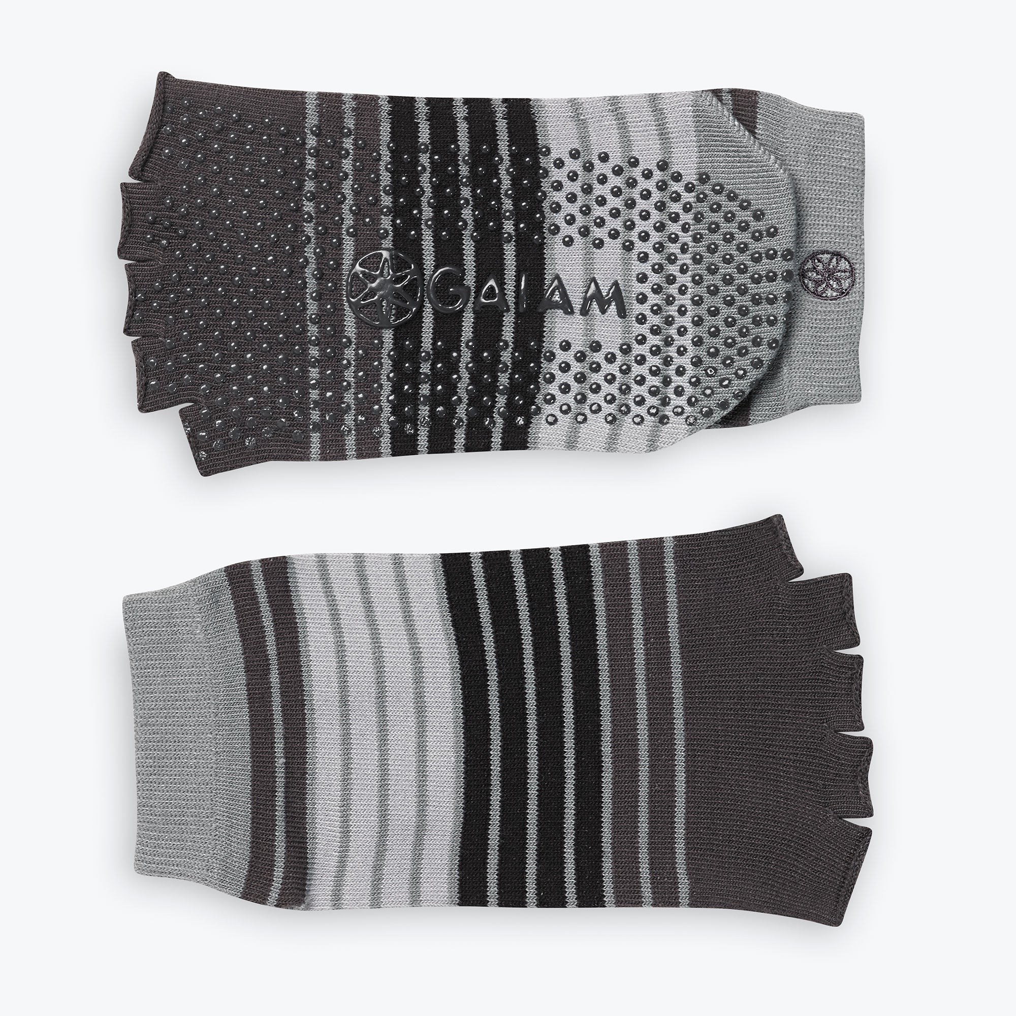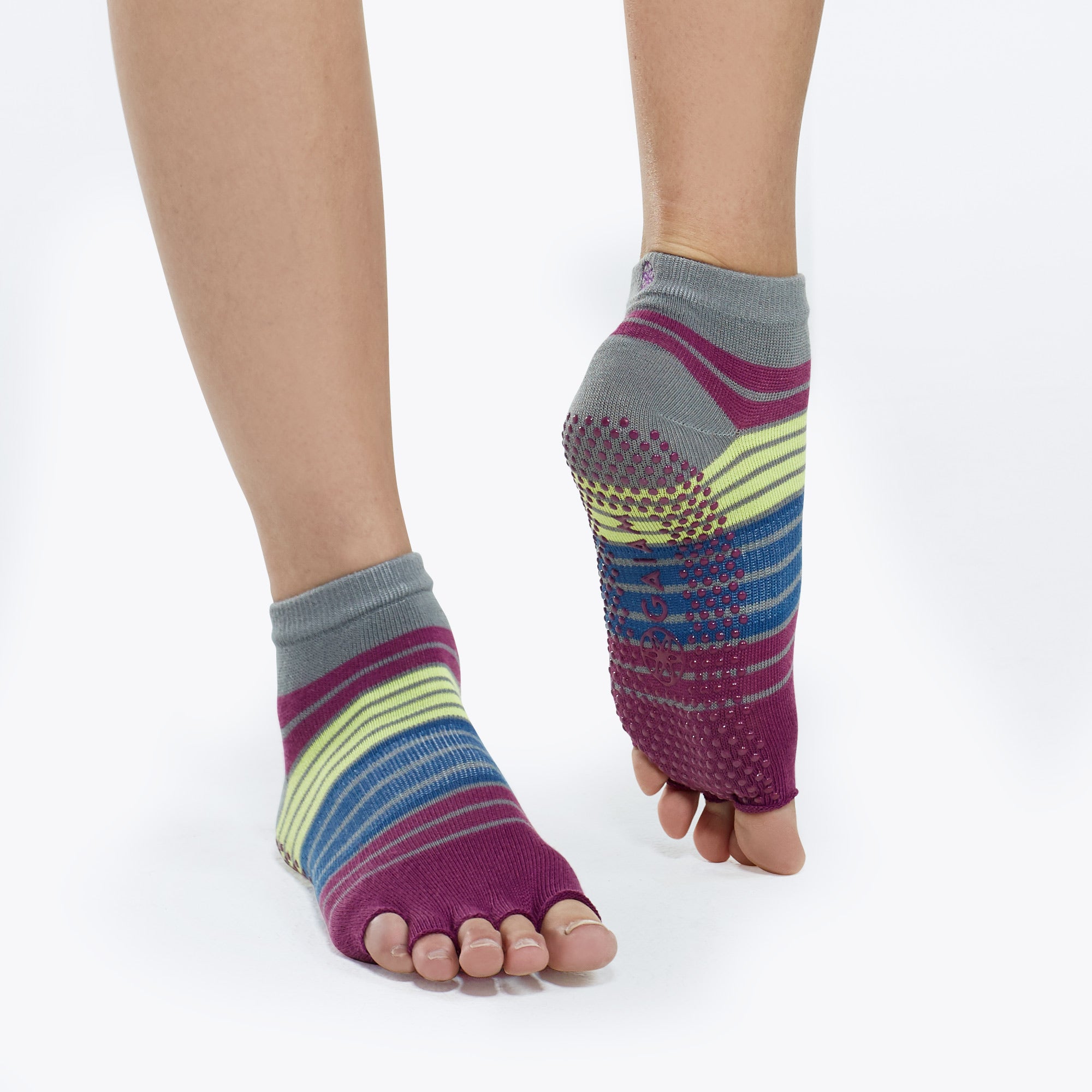 Take your yoga practice wherever you find yourself with these toeless Yoga Socks. The targeted traction zones provide no-slip grip on any surface, while the open design allows toes to spread naturally for better tactile feel and balance. Socks can be used with a mat for added grip.